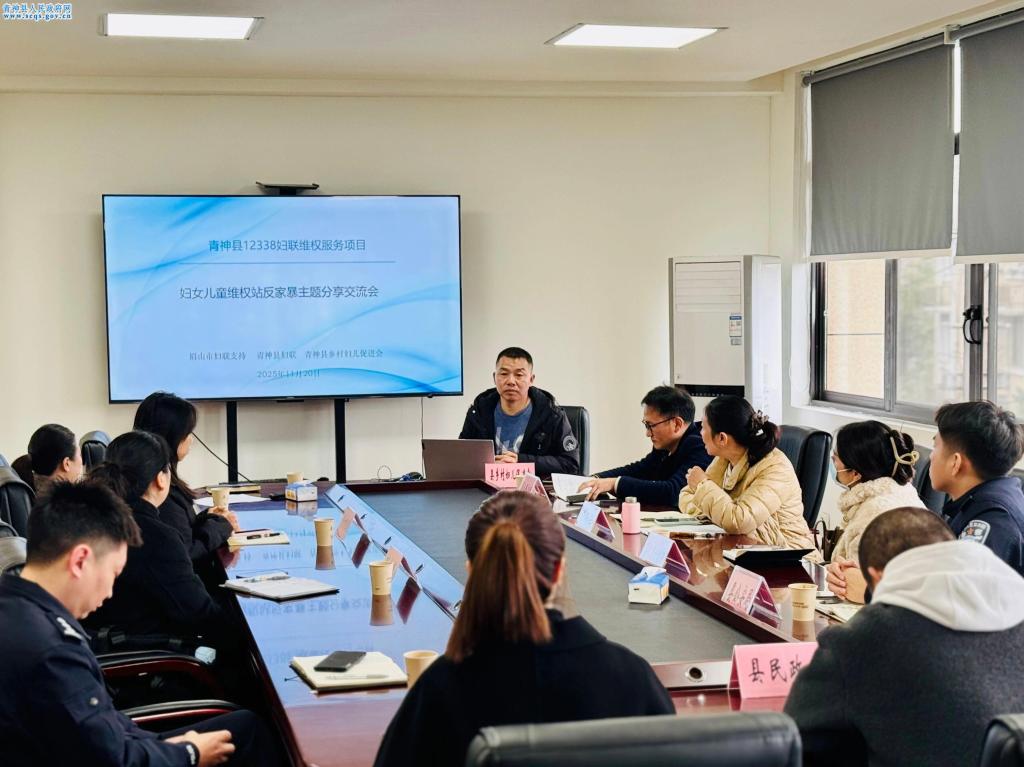 在2025年国际反家暴日来临之际,为进一步提升青神县妇女儿童维权站的实务工作能力,明确公、检、法、妇联等多部门在反家暴工作中的法定职责、协作流程及衔接要点,破解实践中的突出难题,11月20日,青神县妇联携手青神县乡村妇女儿童合作发展促进会,在县委政法委会议室成功举办“妇女儿童维权站反家暴主题分享交流会”。县人民法院、县人民检察院、县公安局、县民政局、县司法局相关工作人员,部分基层妇联干部及12338维权服务团队成员等20余人参加。