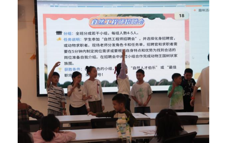 本次活动以“科普赋能成长,科创点亮未来”为理念,活动围绕人工智能与机器人两大主题展开。在“建造动物家庭树”课程中,学生在老师引导下分组绘制动物分类树状图,学习生物分类方法,锻炼系统思维与团队协作能力。“双足机器人科普”环节则通过机器人行走、转弯、动作模仿等演示,结合原理讲解与赛事介绍,激发学生对人工智能与机器人技术的兴趣,树立科技报国志向。