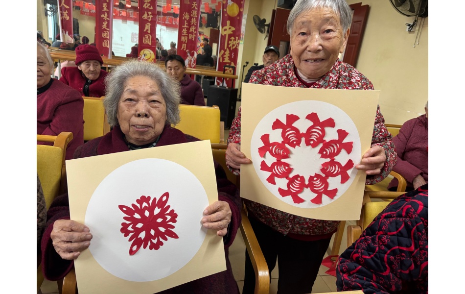 现场氛围温馨融洽。一位参与活动的老人完成作品后高兴地表示,要将所学教给孙子,让剪纸技艺代代相传。活动最后,长者们将作品装裱留念,并合影记录这一温馨时刻。