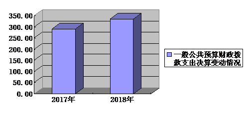 2018年一般公共预算财政拨款支出334.55万元,占本年支出合计的100%。与2017年相比,一般公共预算财政拨款增加44.03万元,增长15.16%。主要变动原因是正常晋级调资、调增五险一金缴费基数、统筹工会经费增加。