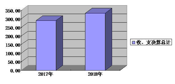 2018年度收、支总计334.55万元。与2017年相比,收、支总计各增加44.03万元,增加15.16%。主要变动原因是正常晋级调资、调增五险一金缴费基数、统筹工会经费增加。