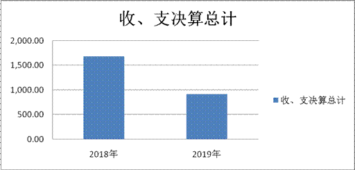 2019年度收、支总计923.18万元。与2018年相比,收、支总计各减少383.4万元,下降45.47%。主要变动原因是正常晋级调资、调增五险一金缴费基数、财政体制改革、项目专项经费减少。
