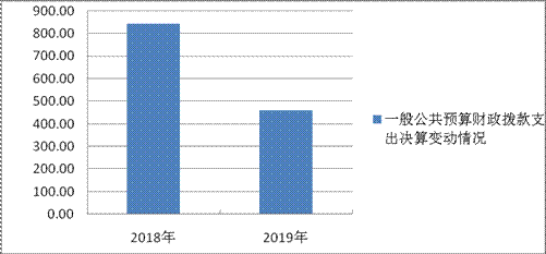 2019年一般公共预算财政拨款支出459.83万元,占本年支出合计的99.6%。与2018年相比,一般公共预算财政拨款减少383.42万元,下降54.5%。主要变动原因是正常晋级调资、调增五险一金缴费基数、财政体制改革、项目专项经费减少。