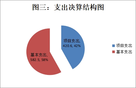 2020年本年支出合计1003.1万元,其中:基本支出582.5万元,占58.1%;项目支出420.6万元,占41.9%。