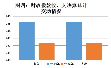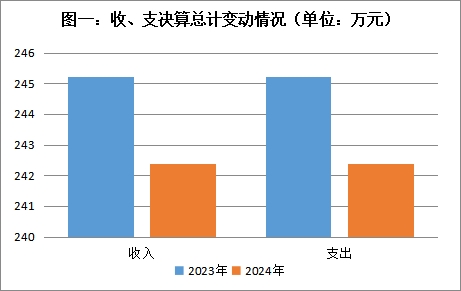 2024年度收、支总计均为242.37万元,与2023年度相比,收、支总计各减少2.85万元,下降1.16%。主要变动原因是2024年7月信访局减少了一人,开支相应减少。
