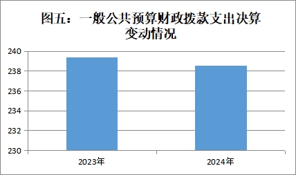 2024年度一般公共预算财政拨款支出238.56万元,占本年支出合计的98.43%。与2023年度相比,一般公共预算财政拨款支出减少0.86万元,下降0.36%。主要变动原因是2024年中途减少一人。