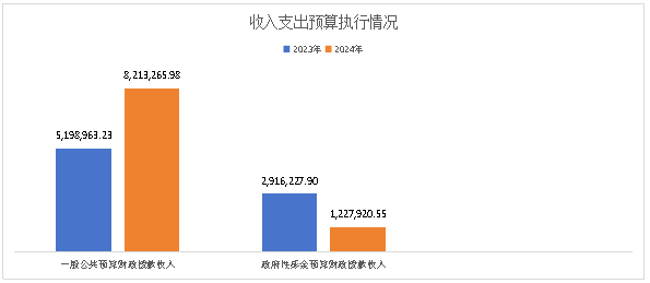 2024年度一般公共预算财政拨款支出8213265.98元,占本年支出合计的86.99%。与2023年度相比,一般公共预算财政拨款支出增加3014302.75元,增长57.98%。主要变动原因是2024年县级财政资金主要安排的是一般公共预算,未安排政府性基金。