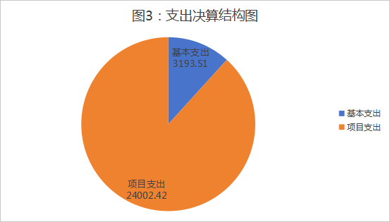 2024年度本年支出合计27195.93万元,其中:基本支出3193.51万元,占11.74%;项目支出24002.42万元,占88.26%;上缴上级支出0万元,占0%;经营支出0万元,占0%;对附属单位补助支出0万元,占0%。