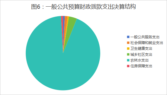 2024年度一般公共预算财政拨款支出27195.93万元,主要用于以下方面:一般公共服务支出206.55万元,占0.76%;社会保障和就业支出332.55万元,占1.22%;卫生健康支出157.38万元,占0.58%;城乡社区支出960.81万元,占3.53%;农林水支出25312.12万元,占93.07%;住房保障支出226.51万元,占0.83%。