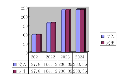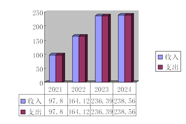 2024年度收、支总计均为238.56万元。与2023年度相比,收、支总计各增加2.17万元,基本持平并小幅增长0.91%。主要变动原因是政府性基金预算财政拨款收入和支出增加。