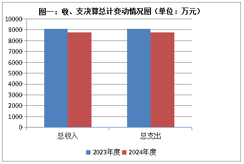 2024年度收、支总计均为8742.62万元。与2023年度相比,收、支总计各减少361.98万元,下降4%。主要变动原因是国家减少了对水利建设项目投入。