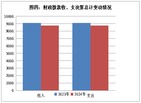 2024年度财政拨款收、支总计均为8742.62万元。与2023年度相比,财政拨款收、支总计各减少361.98万元,下降4%。主要变动原因是国家减少了对水利建设项目投入。
