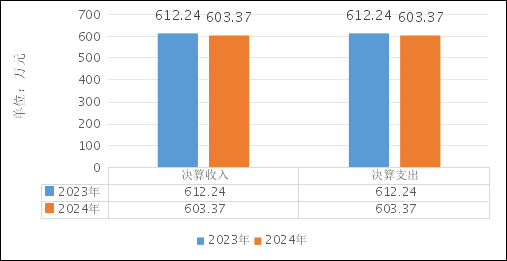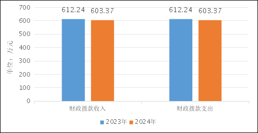 2024年度财政拨款收、支总计均为603.37万元。与2023年度相比,财政拨款收、支总计各减少8.87万元,下降1.49%。主要变动原因是委托审计业务有跨年度项目,审计中介服务费较上年减少。