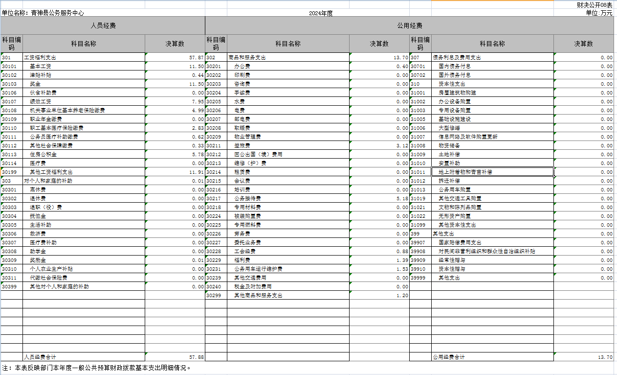 2024年度,青神县公务服务中心机关运行经费支出13.7万元,比2023年度减少5.74万元,下降29.53%。