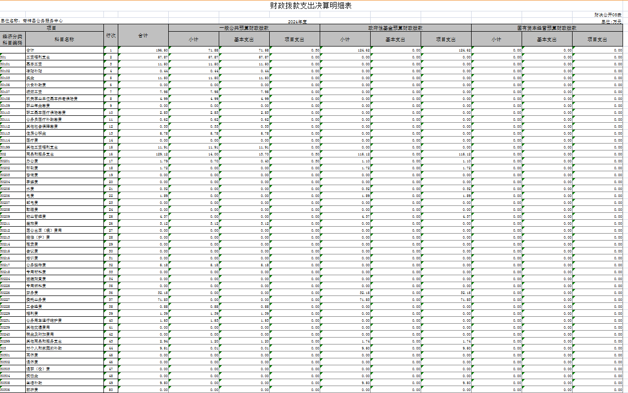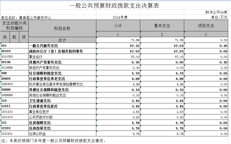 2024年度一般公共预算支出决算数为71.88,完成预算100%。其中: