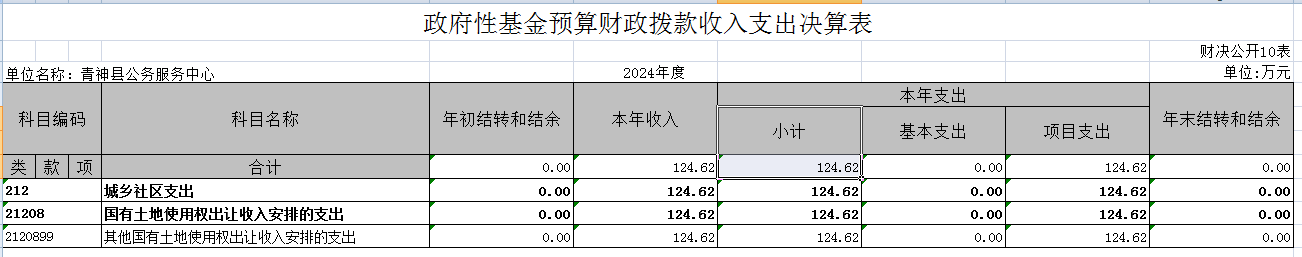 2024年度政府性基金预算财政拨款支出124.62万元。