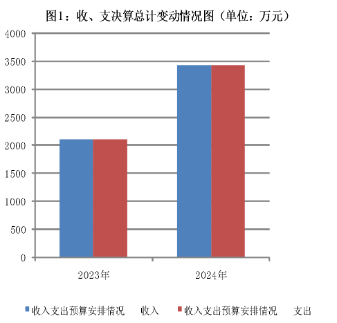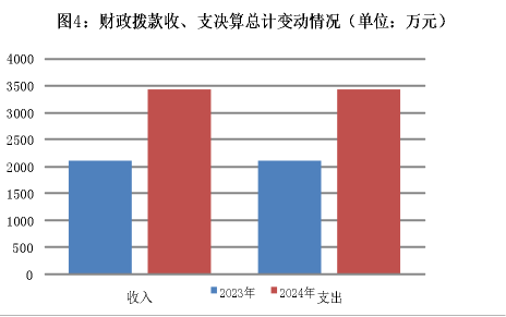 2024年度财政拨款收入、支出总计均为3439.17万元。与2023年度相比,财政拨款收入总计、支出总计各增加1327.57万元,增长62.87%。主要变动原因是2024年增加2023中央引导地方科技发展资金、2023第一批省级工业发展资金、2024年第二批省级工业发展资金、四川立白扩产提质补助资金等项目资金。