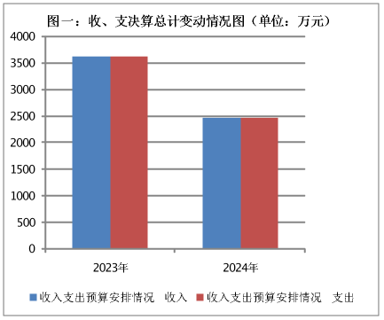 2024年度收、支总计均为2465.71万元。与2023年度相比,收、支总计各减少1148.38万元,下降31.78%。主要变动原因是上级项目资金减少。