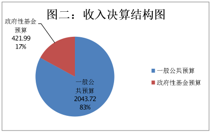 2024年度本年收入合计2465.71万元,其中:一般公共预算财政拨款收入2043.72万元,占83%;政府性基金预算财政拨款收入421.99万元,占17%;国有资本经营预算财政拨款收入0万元,占0%;上级补助收入0万元,占0%;事业收入0万元,占0%;经营收入0万元,占0%;附属单位上缴收入0万元,占0%;其他收入0万元,占0%。