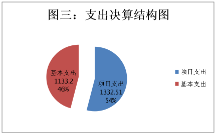 2024年度本年支出合计2465.71万元,其中:基本支出1133.2万元,占46%;项目支出1332.51万元,占54%;上缴上级支出0万元,占0%;经营支出0万元,占0%;对附属单位补助支出0万元,占0%。