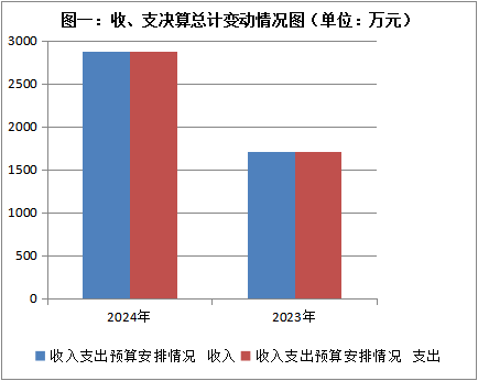 2024年度收、支总计均为2872.83万元。与2023年度相比,收、支总计增加1167.36万元,增长68.44%。主要变动原因是项目增加。