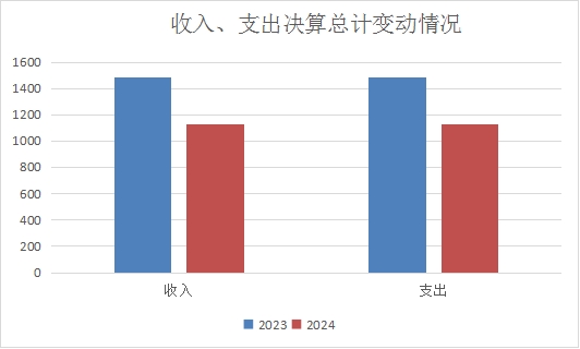 2024年度财政拨款收入、支出总计均为1130.01万元。与2023年度相比,财政拨款收入总计、支出总计各358.44万元,增长/下降24.08%%。主要变动原因是厉行节约,压减支出。
