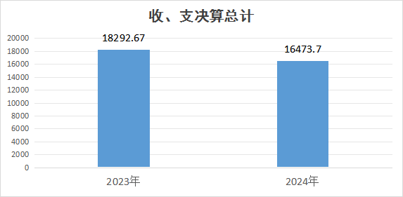 2024年度收入、支出总计均为16473.7万元。与2023年度相比,收入、支出总计各减少1818.97万元,下降9.94%。主要变动原因是医疗收入下降,各项开支缩减。