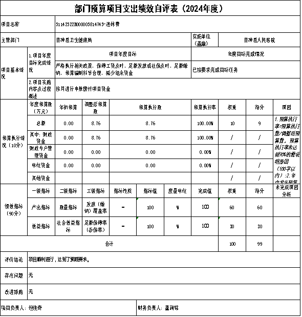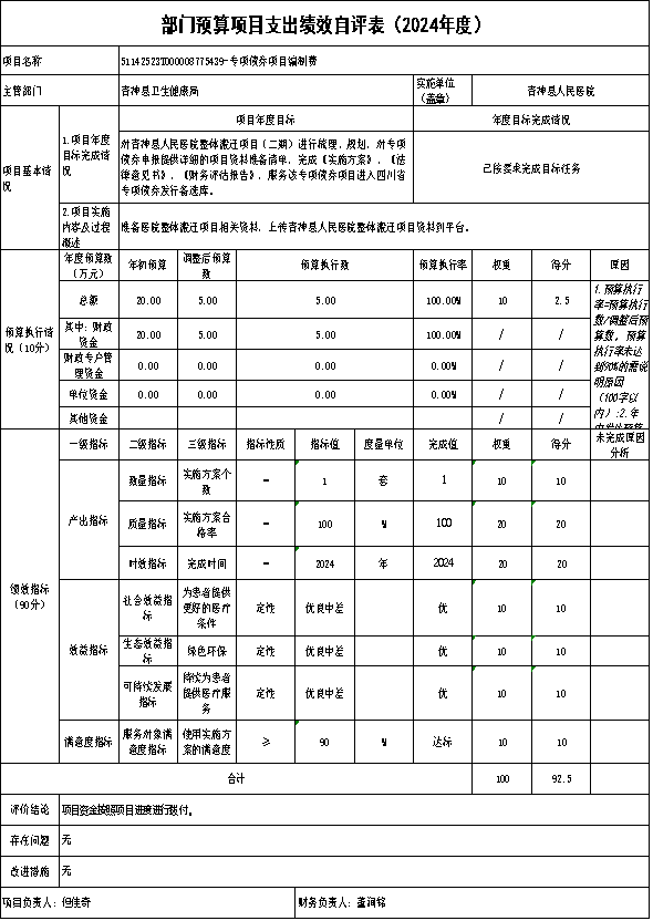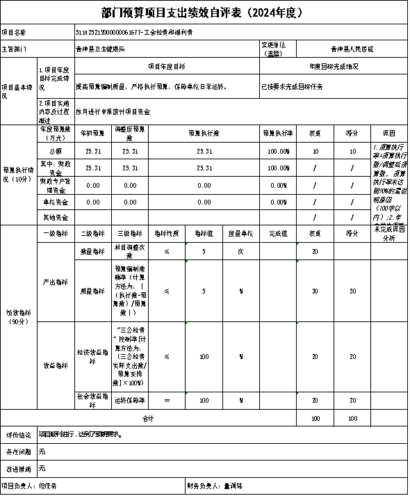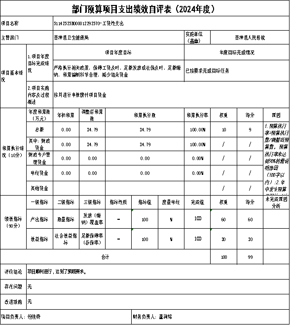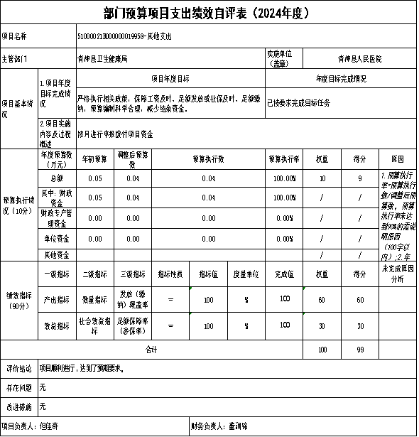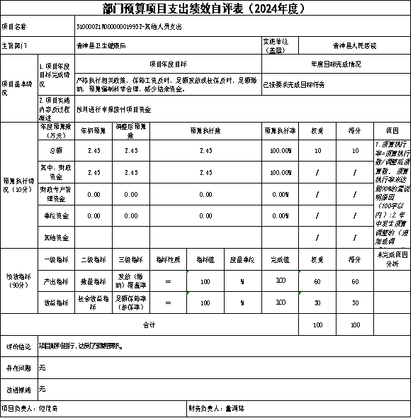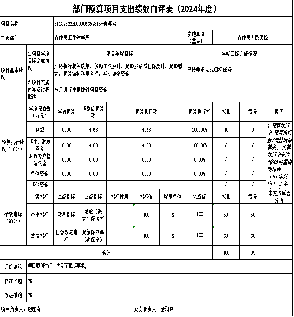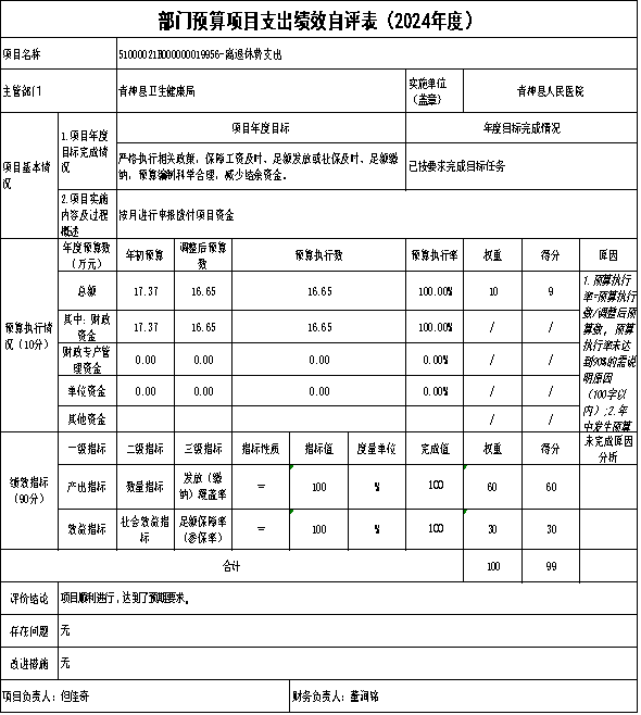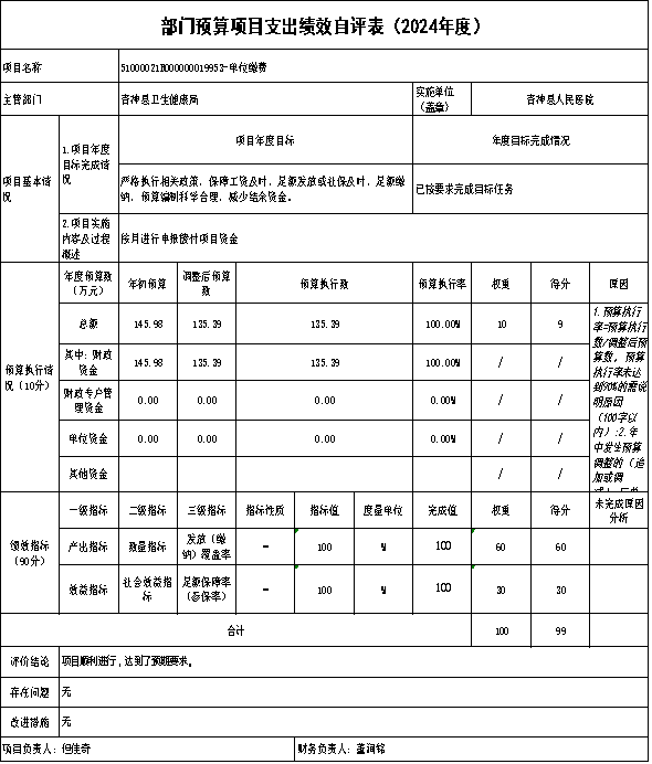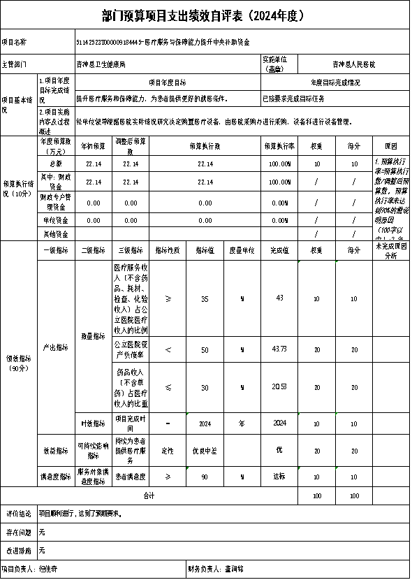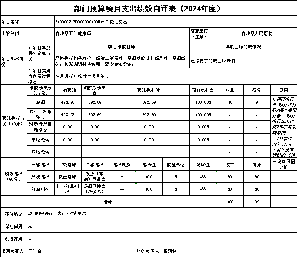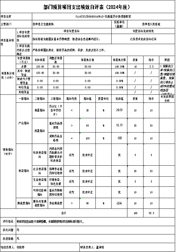 根据预算绩效管理要求,本单位在2024年度预算编制阶段,组织对实施基药补助县级配套项目等4个项目开展了预算事前绩效评估,对4个项目编制了绩效目标,在预算执行过程中,选取4个项目开展绩效监控,组织对4个项目开展绩效自评,绩效自评表详见第四部分附件。