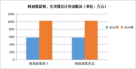 2024年度财政拨款收、支总计均为1023.1万元。与2023年度相比,财政拨款收、支总计各增加442.92万元,增长76.34%,主要原因是新增变更老保健院(文林街2号)房屋、土地资产等相关费用的项目资金480.49万元。