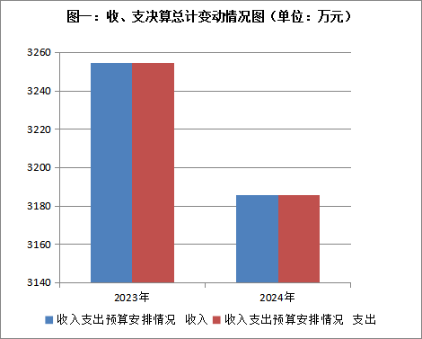 2024年度收入、支出总计均为3185.74万元。与2023年度相比,收入减少68.99万元,下降2.12%、支出减少68.99万元,下降2.12%。主要变动原因是2024年事业收入减少623.38万元。