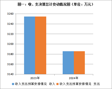 2024年度收入、支出总计均为3185.74万元。与2023年度相比,收入减少68.99万元,下降2.12%、支出减少68.99万元,下降2.12%。主要变动原因是2024年事业收入减少623.38万元。