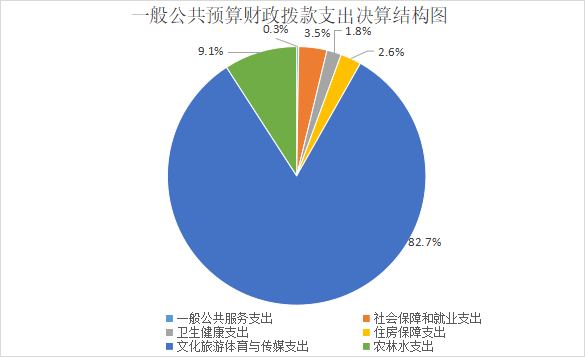 2024年度一般公共预算财政拨款支出1524.81万元,主要用于以下方面:一般公共服务支出3.86万元,占0.3%;文化旅游体育与传媒支出1260.53万元,占82.7%;社会保障和就业支出53.7万元,占3.5%;卫生健康支出27.8万元,占1.8%;农林水支出139.2万元,占9.1%;住房保障支出39.71万元,占2.6%。