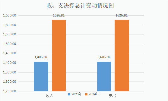 2024年度收、支总计均为1626.81万元。与2023年度相比,收、支总计各增加220.5万元,增长15.7%。主要变动原因是项目增加,项目经费增加。
