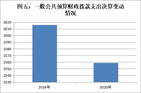 (图4:财政拨款收、支决算总计变动情况) 五、一般公共预算财政拨款支出决算情况说明 (一)一般公共预算财政拨款支出决算总体情况 2020年一般公共预算财政拨款支出1559.17万元,占本年支出合计的97.37%。与2019年相比,一般公共预算财政拨款减少56.91万元,减少3.52%。