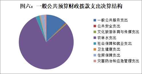 (图5:一般公共预算财政拨款支出决算变动情况) (二)一般公共预算财政拨款支出决算结构情况 2020年一般公共预算财政拨款支出1559.17万元,主要用于以下方面:一般公共服务(类)支出169.36万元,占10.86%;社会保障和就业(类)支出37.69万元,占2.4%;卫生健康支出7.84万元,占0.5%;住房保障支出38.13万元,占2.44%;灾害防治和应急管理支出18万元,占1.15%,公共安全支出7.65万元,占0.5%;文化旅游体育与传媒支出9.28万元,占0.6%;农林水支出1271.22万元,占81.55%;