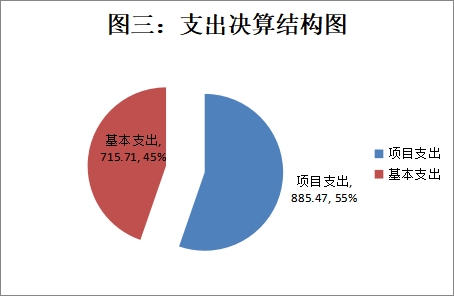 (图2:收入决算结构图) 三、支出决算情况说明 2020年本年支出合计1601.18万元,其中:基本支出715.74万元,占45%;项目支出885.47万元,占55%。