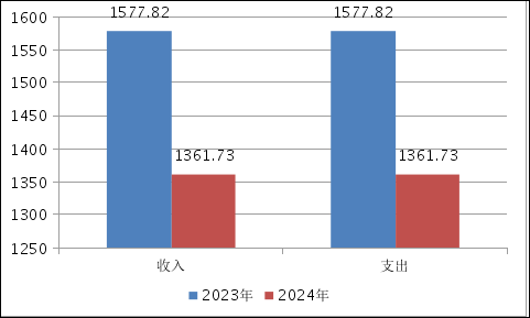 2024年度收、支总计均为1361.73万元。与2023年度相比,收、支总计各减少216.09万元,下降13.69%。