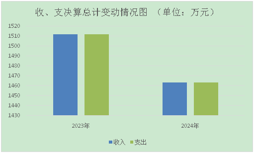 2024年度收入、支出总计均为1463.38万元。与2023年度相比,收入、支出总计减少48.82万元,下降3%。主要变动原因是2024年总量的减少。