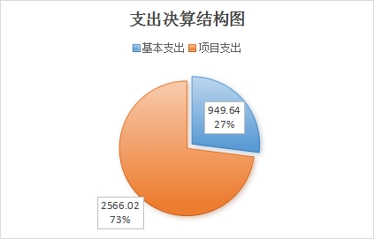 2024年度本年支出合计3515.65万元,其中:基本支出949.64万元,占27.01%;项目支出2566.02万元,占72.99%;上缴上级支出0万元,占0%;经营支出0万元,占0%;对附属单位补助支出0万元,占0%。