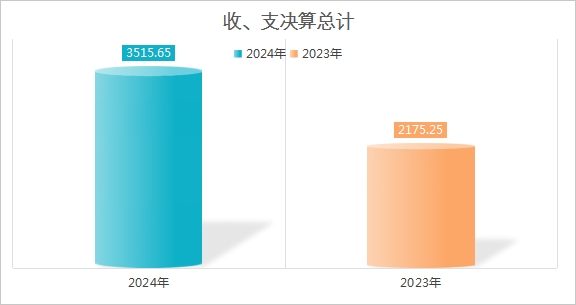 2024年度收、支总计均为3515.65万元。与2023年度相比,收、支总计各增加1340.4万元,增长61.62%。主要变动原因是就业创业补助资金支出和城乡居民养老保险资金支出较上年度增加,人员变动等。