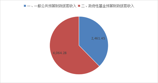 2024年本年收入合计6,525.73万元,其中:一般公共预算财政拨款收入2,461.45万元,占37.72%;政府性基金预算财政拨款收入4,064.28万元,占62.28%。