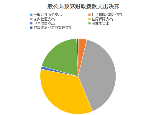 2024年度一般公共预算财政拨款支出4700.41万元,主要用于以下方面:一般公共服务支出6.7万元,占0.14%;社会保障和就业支出168.06万元,占3.58%;卫生健康支出57.77万元,占1.23%;城乡社区支出1881.2万元,占40.02%;农林水支出942.04万元,占20.04%;住房保障支出1615.83万元,占34.38%;灾害防治及应急管理支出28.81万元,占0.61%。