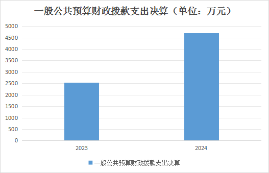 2024年度一般公共预算财政拨款支出4700.41万元,占本年支出合计的35.43%。与2023年度相比,一般公共预算财政拨款支出增加2162.18万元,增长85.18%。主要变动原因是一般公共预算下项目支付增加。