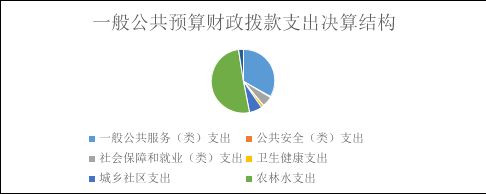 2024年度一般公共预算财政拨款支出5288.32万元,主要用于以下方面:一般公共服务支出1878.81万元,占35.5%;公共安全支出19.99万元,占0.4%;社会保障和就业支出295.07万元,占5.6%;卫生健康支出76.49万元,占1.4%;农林水支出2897.06万元,占54.8%;住房保障支出120.91万元,占2.3%。