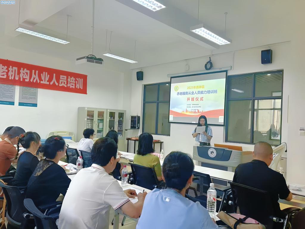2025年6月9日,青神县民政局携手四川城市职业学院,正式启动2025年养老服务人才技能培训。来自全县8家养老机构的16名业务骨干走进高校,参加为期一周的集中培训,开启技能提升之旅。