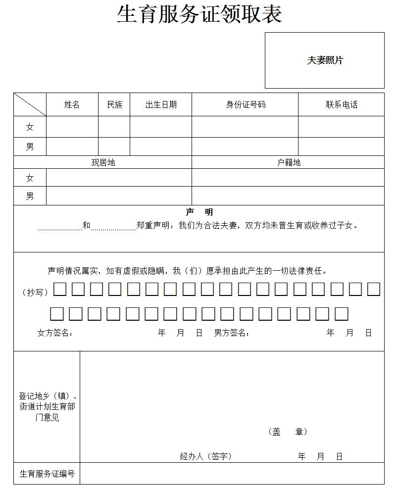 生育服务证领取表(空表下载).doc