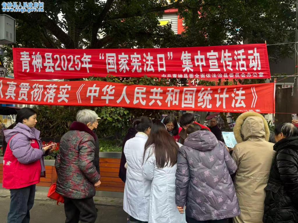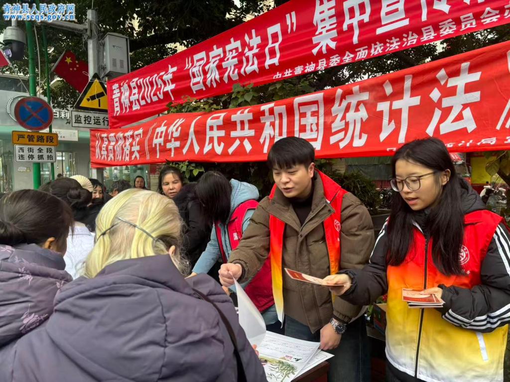 为贯彻落实党的二十大及二十届三中、四中全会精神和新修改《统计法》精神,提升统计普法宣传教育质效,青神县统计局于12月8日,在联华超市外开展“12·4”国家宪法日暨“12·8”统计法颁布日宣传活动。