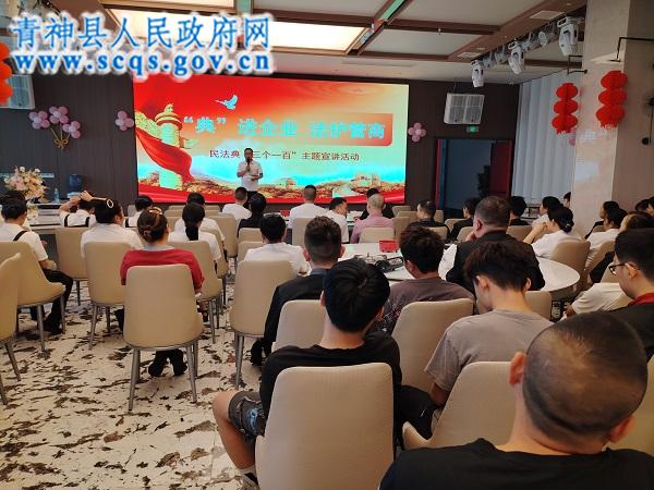 第五个“民法典宣传月”期间,青神县司法局组织青竹街道盐关社区法律顾问与社区法律明白人,走进辖区金香源饭店,为50余名企业职工进行普法宣讲。