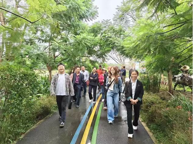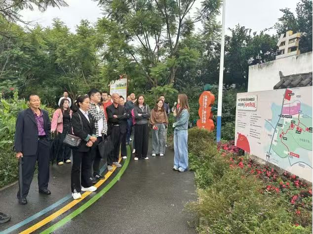 在蒲江县铁牛村,考察团一行深入柑橘种植基地及乡村旅游示范点,详细了解当地柑橘产业发展历程。铁牛村以“品种改良为基础、科技赋能为支撑、三产融合为路径”,培育出优质柑橘品种,通过建立标准化种植体系、引入智能灌溉和绿色防控技术,实现柑橘品质与产量双提升。同时,该村延伸产业链条,开发柑橘果汁、果干等深加工产品,并结合田园风光打造“柑橘采摘+认养果树+乡村民宿+农耕体验”的旅游模式,让一枚小柑橘成为带动村民增收、村集体经济壮大的“致富果”。考察团成员仔细询问品种选择、市场销售、品牌打造等关键问题,与当地村干部展开热烈交流,对铁牛村“从单一种植到全链条发展”的产业思维表示赞赏。