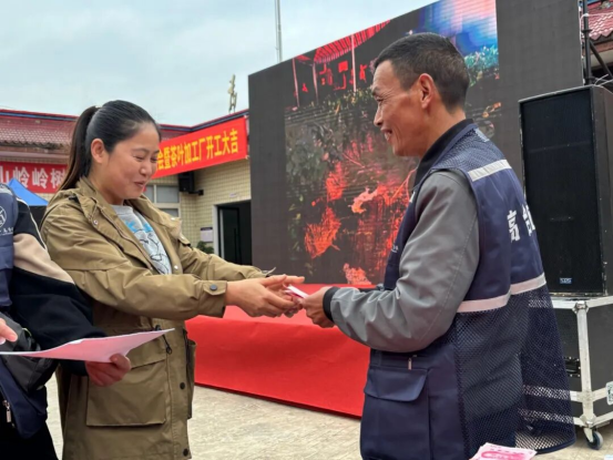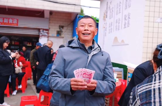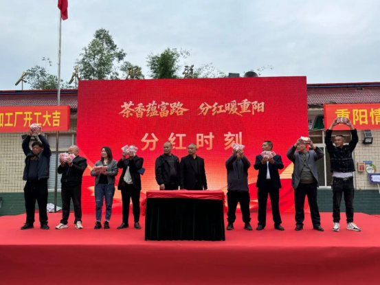 分红大会上,村“两委”通报2024年度集体经济收入、盈利明细,讲解茶叶加工厂建设规划与茶产业运营成效,随后精准发放分红资金。村民周良军领了400元,十分高兴,现场还摆了坝坝宴,村民都领到了钱。